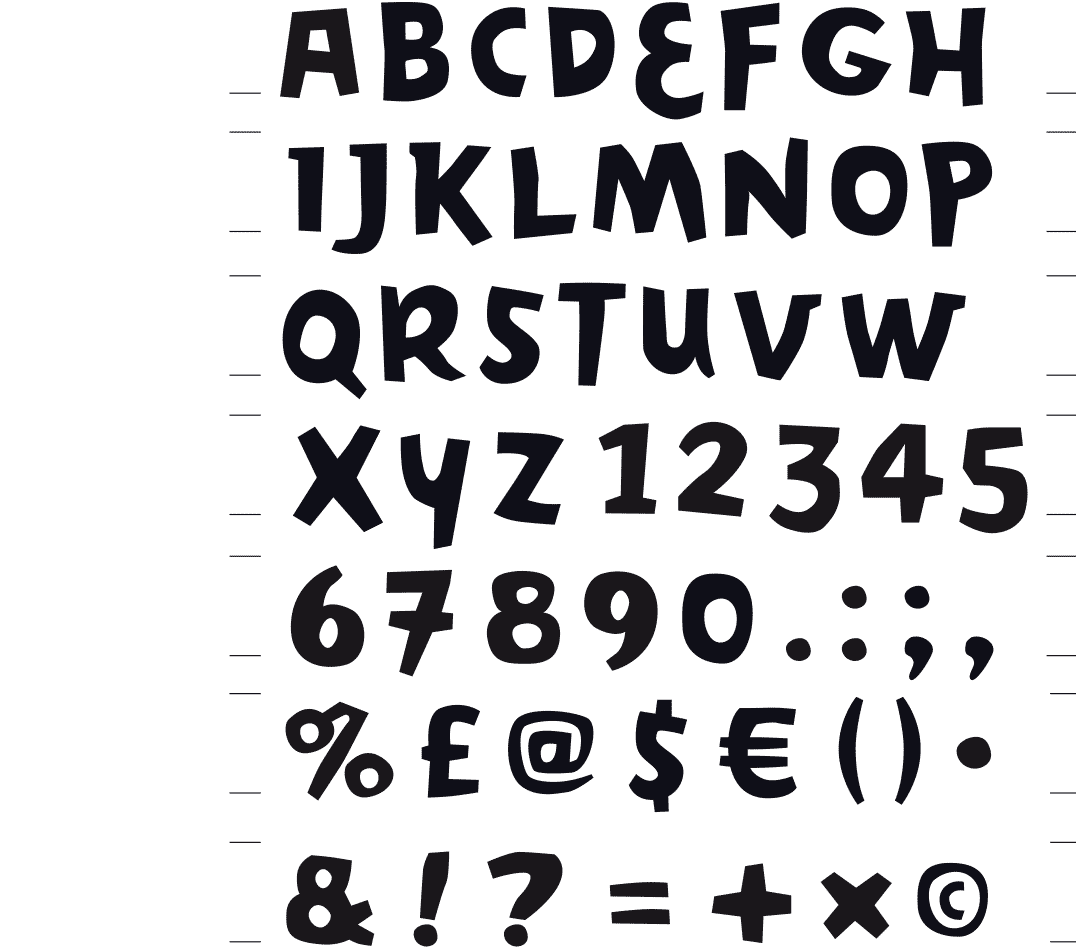 [1999] The idea here was to get rid of base-lines and letter heights to make it look almost as if the characters were dancing on paper. While designing the font, I had to be very direct without having to bother about issues such as construction or form. So, I made words quickly, clicking with the mouse, drawing several times the same letters so they would interact with each other. This direct approach resulted in a paper-cut effect.